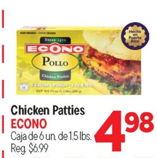 Chicken patties econo caja de 6 un. de 1.5 lbs.