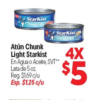 Atun chunk light starkist en agua o aceite, svt ** lata de 5 oz.