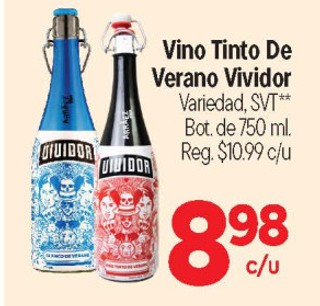 Vino tinto de verano vividor variedad, SVT* bot. de 750 ml.