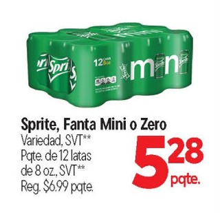 Sprite, Fanta Mini o Zero Variedad, SVT** Pqte. de 12 latas de 8 oz., SVT**