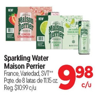 Sparkling Water Maison Perrier France, Variedad, SVT** Pqte, de 8 latas de 11.15 Reg $10.99 c/u oz.