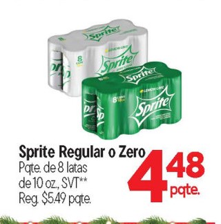 Sprite Regular o Zero Pqte, de 8 latas de 10 oz., SVT** Reg. $5.49 pate.