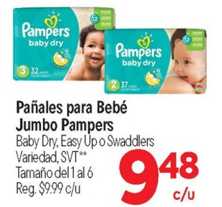 Pañales para Bebé Jumbo Pampers Baby Dry, Easy Up o Swaddlers Variedad, SVT** Tamaño del 1 al 6