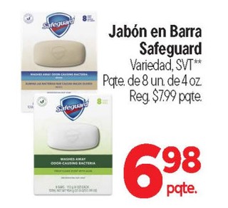 Jabón en Barra Safeguard Variedad, SVT** Pqte. de 8 un de 4 oz.