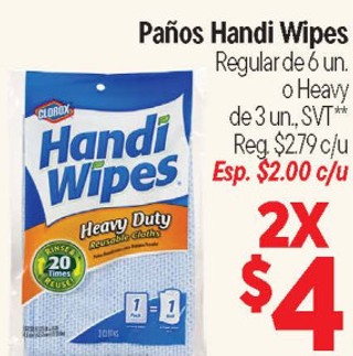 Paños Handi Wipes Regular de 6 un. o Heavy de 3 un., SVT** .