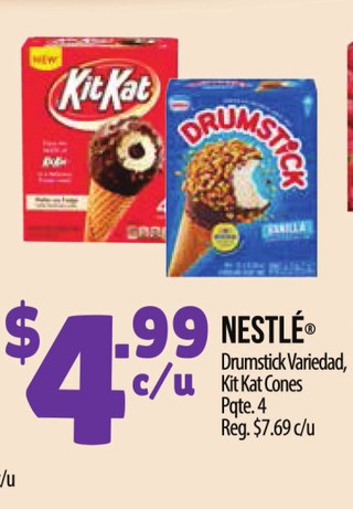 Nestle drumstick variedad, kit kat cones pqte. 4