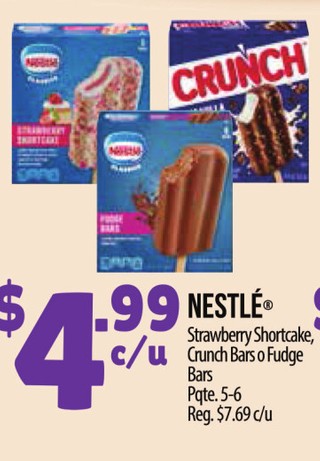 Nestle strawberry shortcake, crunchbars o fudge bars pqte. 5-6