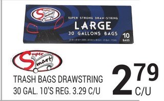 Super mart trash bags drawstring 30 gal.