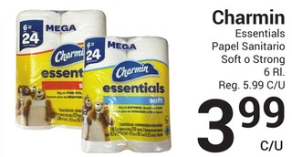 Charmin essentials papel sanitario soft o strong 6 rl.