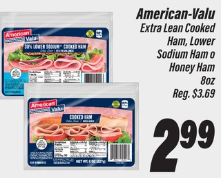 American-Valu Extra Lean Cooked Ham, Lower Sodium Ham o Honey Ham 8oz.