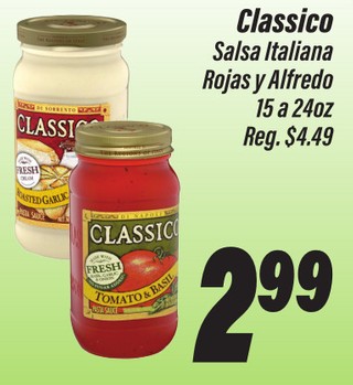 Classico Salsa Italiana Rojas y Alfredo 15 a 24oz