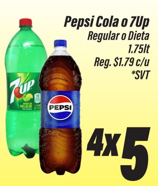 Pepsi cola o 7up regular o dieta 1.75 lt.