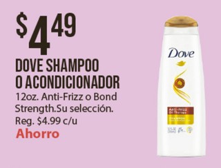 Dove shampoo o acondicionador 12 oz. anti-frizz o bond strength, su seleccion.
