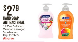 Hand soap antibacterial 11.25oz. softsoap variedad a escoger. su seleccion.
