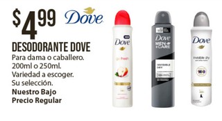 Desodorante dove para dama o caballero. 200ml o 250ml. variedad a escoger. su seleccion. nuestro bajo precio regular