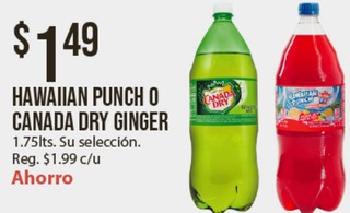HAWAIIAN PUNCH O CANADA DRY GINGER 1.75lts. Su selección.