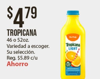 TROPICANA 46 o 52oz. Variedad a escoger. Su selección.