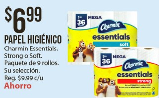 PAPEL HIGIÉNICO Charmin Essentials. Strong o Soft. Paquete de 9 rollos. Su selección.