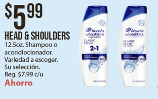 HEAD & SHOULDERS 12.5oz. Shampoo o acondiocionador. Variedad a escoger. Su selección.