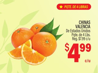 CHINAS VALENCIA De Estados Unidos Pqte. de 4 Lbs.