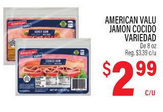 AMERICAN VALU JAMON COCIDO VARIEDAD De 8 oz.