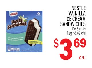 NESTLE VAINILLA ICE CREAM SANDWICHES De 6 units.
