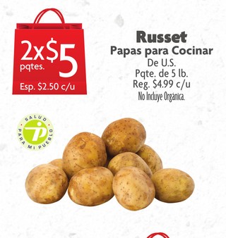 Russet papas para cocinar de u.s. pqte. de 5 lb.