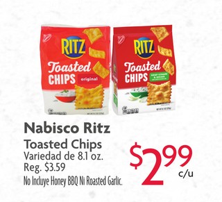 Nabisco ritz toasted chips variedad de 8.1 oz.