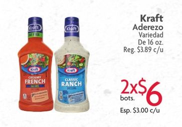 kraft aderezo variedad reg. $c/u creamy french classic ranch x$bots. esp.