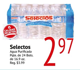 Selectos agua purificada pqte. de 24 bots. de 16.9 oz.
