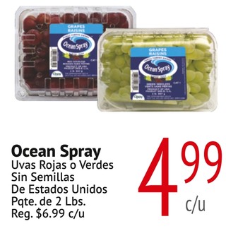 Ocean spray uvas rojas o verdes sin semillas de estados unidos pqte. de 2 lbs.