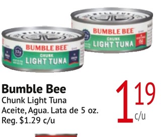 Bumble Bee Chunk Light Tuna Aceite, Agua. Lata de 5 oz.