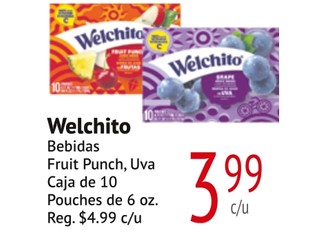 Welchito Bebidas Fruit Punch, Uva Caja de 10 Pouches de 6 oz.