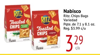 Nabisco ritz chips bags variedad pqte. de 7.1 y 8.1 oz.
