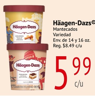 Haagen-dazs mantecados variedad env. de 14 y 16 oz.