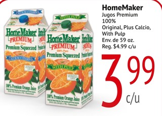 HomeMaker Jugos Premium 100% Original, Plus Calcio, With Pulp Env. de 59 oz.