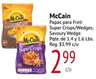 Mccain papas para freir super crips/wedges, savory wedge pqte. de 1.4 y 1.6 lbs.