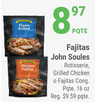 Fajitas john soules rotisserie, grilled chicken o fajitas cong. pqte. 16 oz