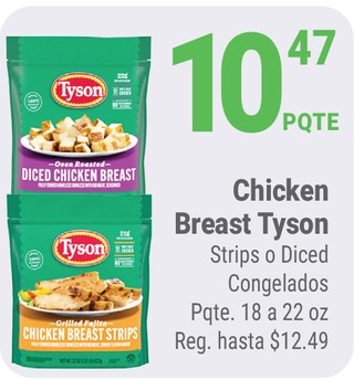 Chicken breast tyson strips o diced congelados pqte. 18 a 22 oz