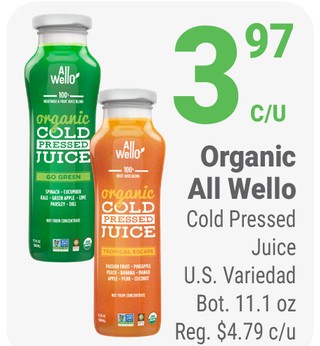 Organic All Wello Cold Pressed Juice U.S. Variedad Bot. 11.1 oz