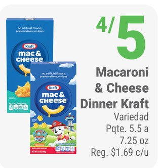 Macaroni y cheese dinner kraft variedad pqte. 5.5 a 7.25 oz