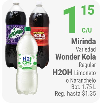 Mirinda variedad wonder kola regular h20h limoneto o naranchelo bot. 1.75 l