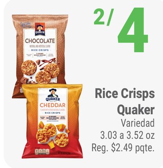 Rice crisps quaker variedad 3.03 a 3.52 oz.