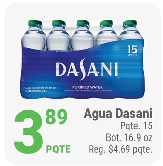 Agua dasani pqte. 15 bot. 16.9 oz.
