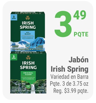 Jabon irish spring variedad en barra pqte. 3 de 3.75 oz.