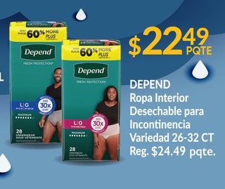 DEPEND Ropa Interior Desechable para Incontinencia Variedad 26-32 CT