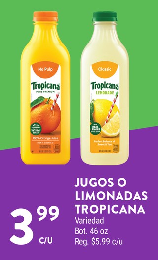 JUGOS O LIMONADAS TROPICANA Variedad Bot. 46 oz