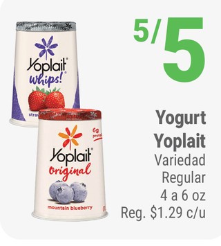 Yogurt Yoplait Variedad Regular 4 o 6 oz.