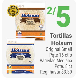 Tortillas Holsum Original Small Pqte. 16 ct o Variedad Mediana Pqte. 8 ct.