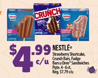 NESTLE Strawberry Shortcake, Crunch Bars, Fudge Bars u Oreo Sandwiches Pqte. 4-6 ct.